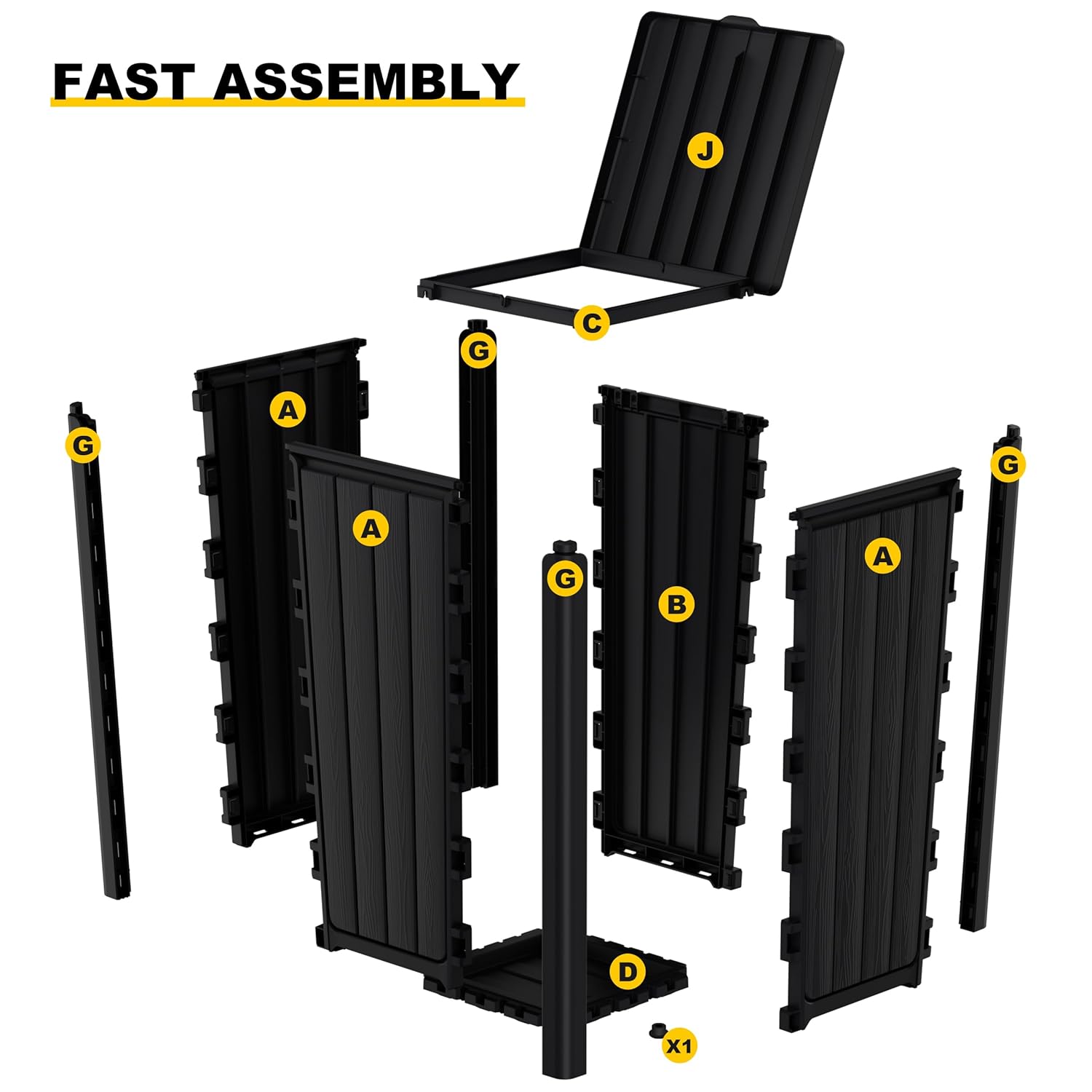 EasyUp Outdoor Trash Can with Lid, Waterproof and Sunscreen Resin Garbage Cans, Outside Trash Bin for Patio, Kitchen, Deck or Backyard(Black)
