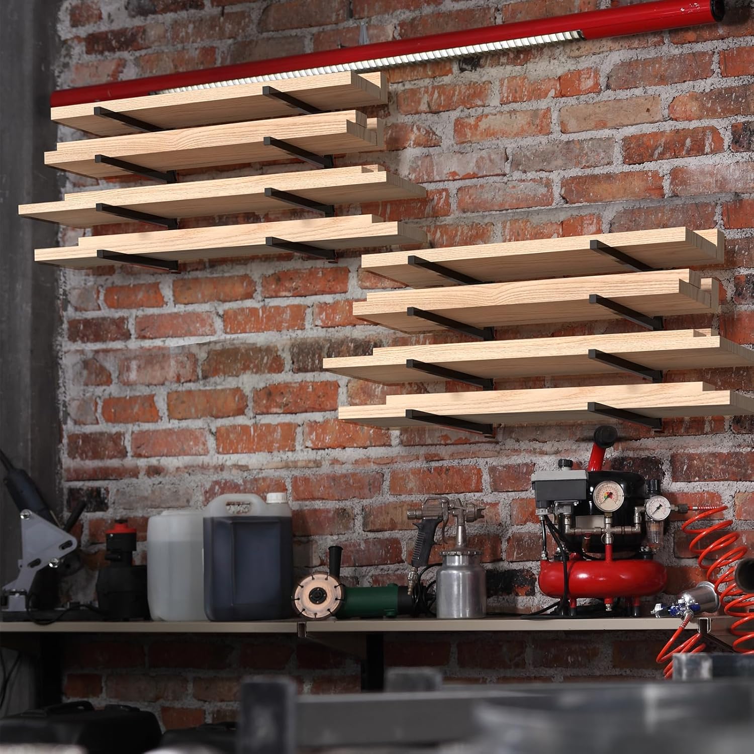 - Versatile Organizer: With 4 levels, this wood rack is designed to optimize storage for a wide range of items, providing convenience and efficiency in keeping your space clutter-free and well-organized. From lumber and ladders to power tools and garden tools and so on,this versatile rack offers ample space in your house, garage, basement, shed or workplace.