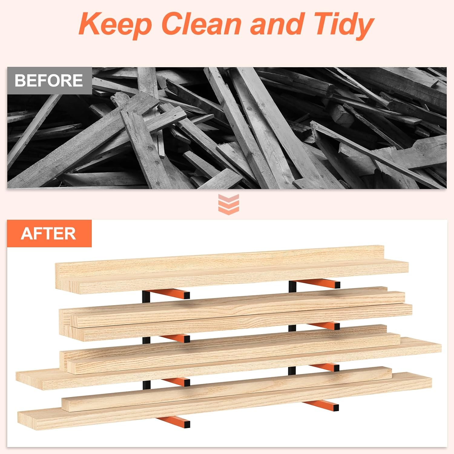 - Versatile Organizer: With 4 levels, this wood rack is designed to optimize storage for a wide range of items, providing convenience and efficiency in keeping your space clutter-free and well-organized. From lumber and ladders to power tools and garden tools and so on,this versatile rack offers ample space in your house, garage, basement, shed or workplace.
