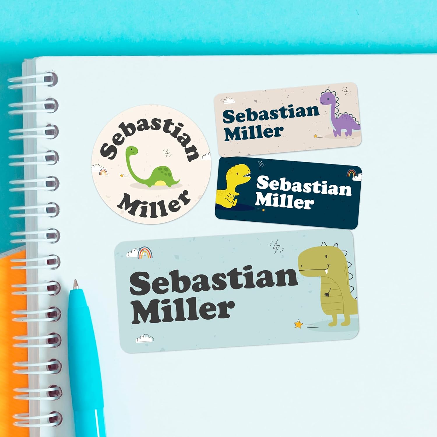 - 🦕 Personalized Name Labels for Kids — Add your child’s full name to colorful, dinosaur-theme personalized stickers that make organizing fun and easy. These name tag stickers help prevent lost items at school, daycare, or camp while encouraging kids to identify their own belongings with pride. Great for boys and girls of all ages.