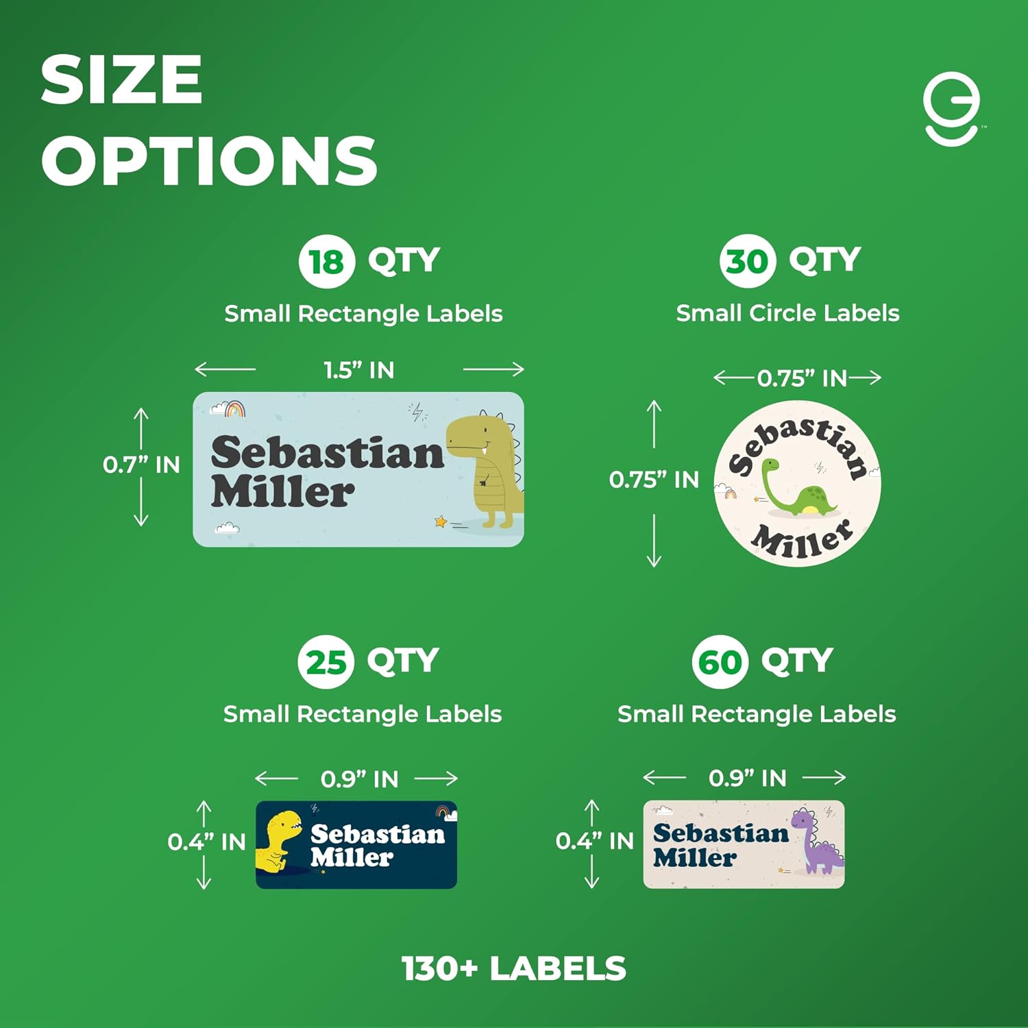 - 📏 Kids Stickers Pack of 130+ with Size Options — This set includes 133 labels in three practical sizes to fit all your child’s essentials: 18 large (1.5" x 0.7"), 30 round (0.75"), and 85 mini (0.9" x 0.4"). Use them on water bottle stickers for kids, books, school supplies for kids, lunch containers, clothing, and more—no item too big or too small!