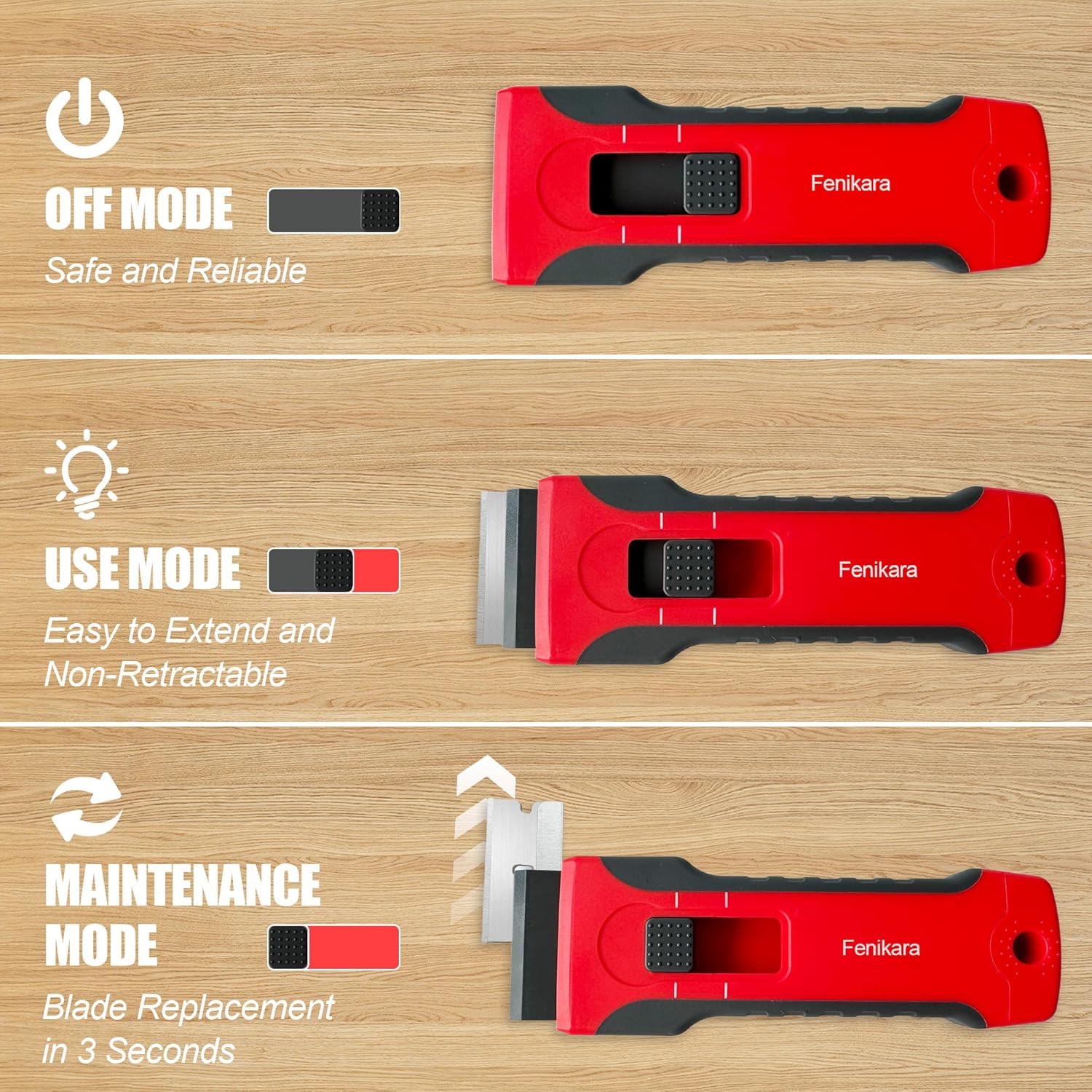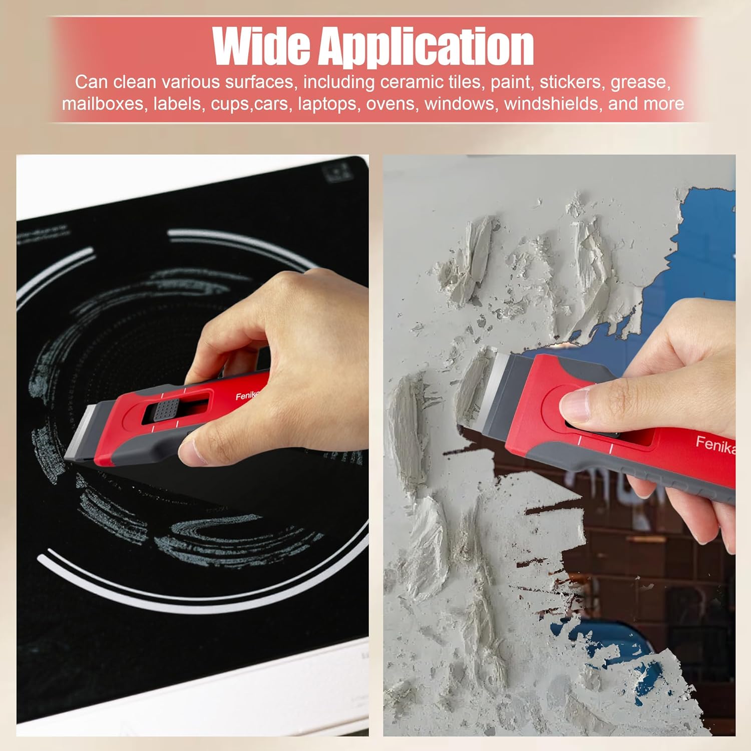 - 【Upgraded Retractable Magnetic Scraper】 Fenikara plastic razor blade scraper—now upgraded for ultimate performance! With enhanced materials and an optimized internal structure, you’ll never have to deal with the awkward moments of a retracting blade again. The reinforced core components ensure you can confidently tackle tough and heavy-duty cleaning tasks.