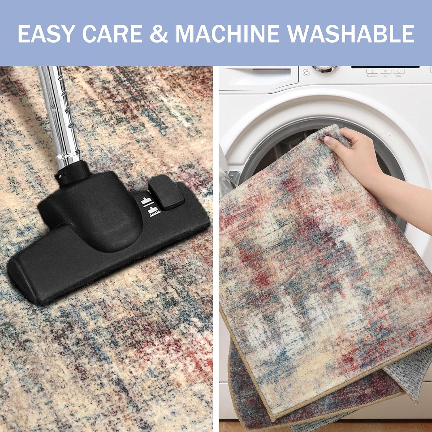 - Machine Washable: This small indoor door mat is machine washable for easy maintenance, keeping it fresh and vibrant without the need for manual cleaning. Noted: When vacuuming, use a low setting or a robotic vacuum to prevent shifting or bunching
