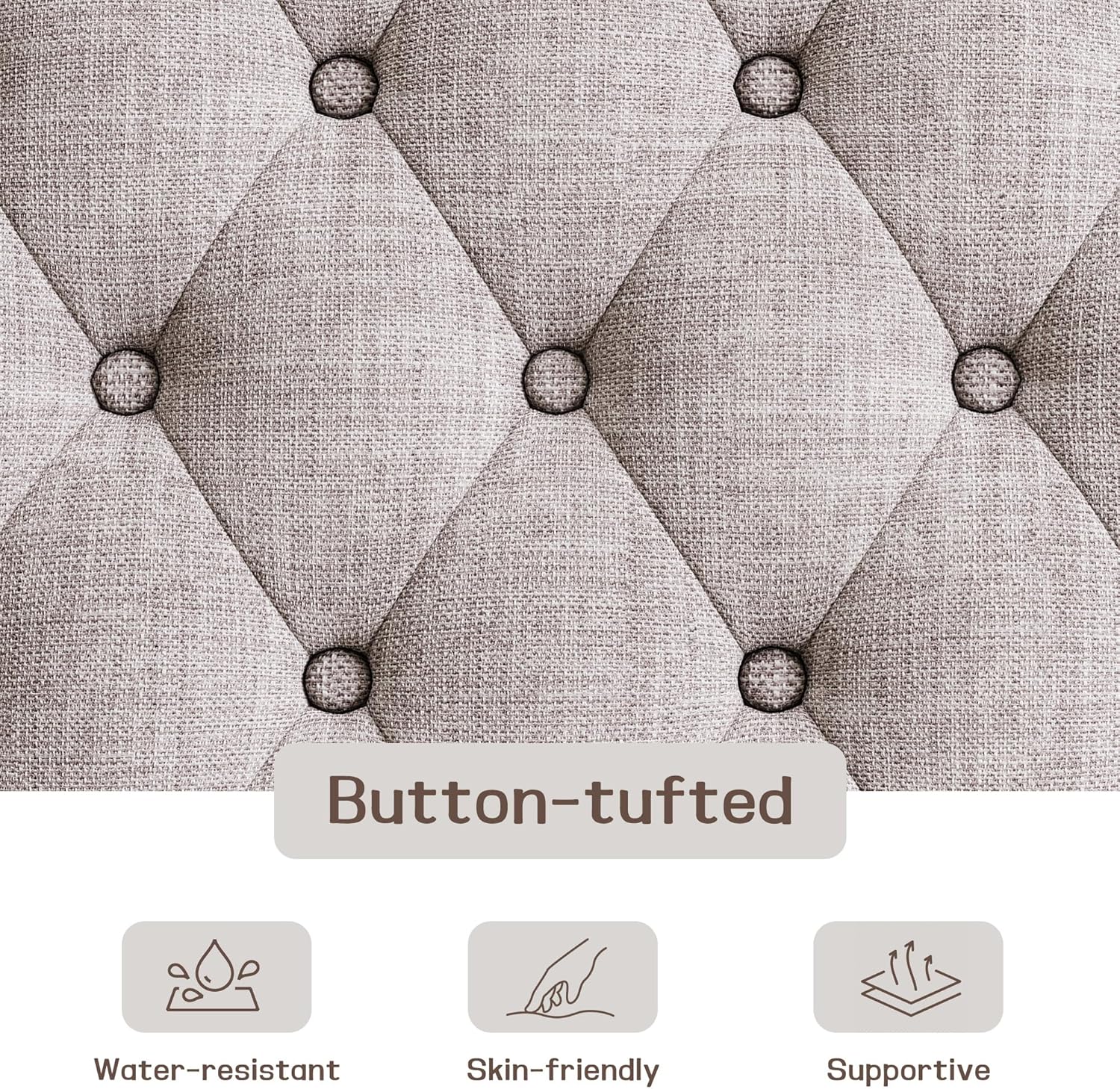 - 【Premium Materials & Sturdy Build】 Crafted with high-resiliency foam, textured linen fabric, and a solid wood frame, this ottoman ensures lasting comfort and durability. The reinforced legs provide exceptional stability, supporting up to 220 lbs—making it reliable as both a coffee table and extra seating. The elegant finish and upholstery resist wear, perfect for active households.