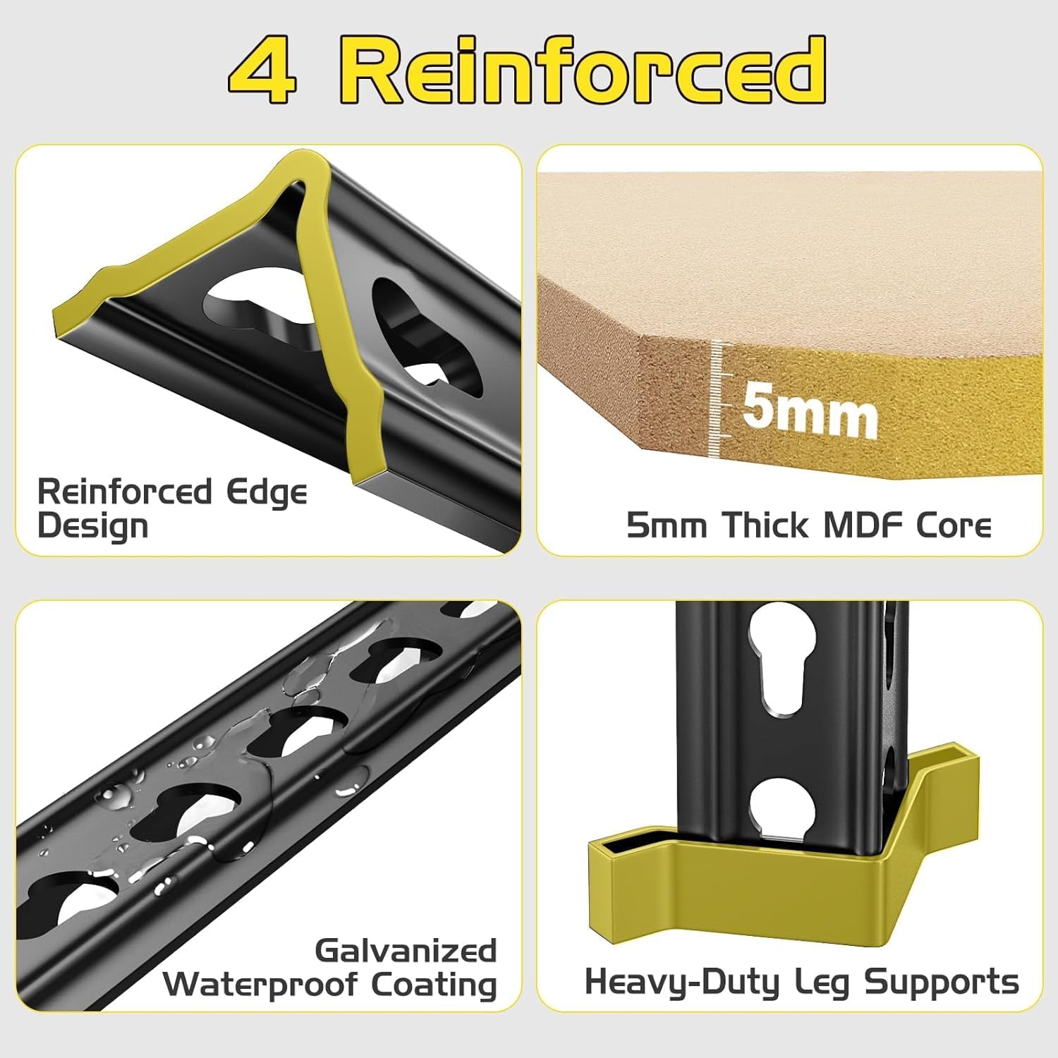 - 【Safer & Stronger Rolled Edge Design】Built tougher and safer! Forget flimsy, sharp-edged posts. Our shelving features a premium rolled-edge design on the metal columns. This not only makes the columns thicker and more durable but also protects your hands from cuts and scratches. It's the smarter, safer choice for garage shelves or shelves for garage storage.