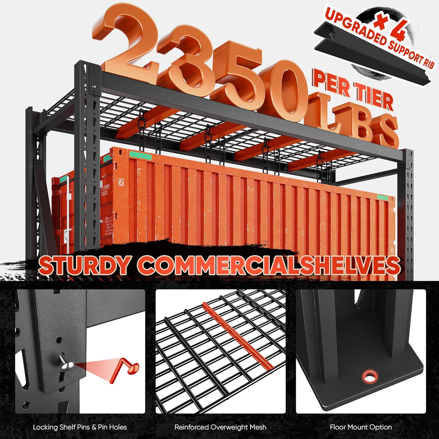- 【 9400LBS Extra Heavy Duty Garage Shelving】Bepatio extra storage shelves units is constructed with reinforced steel beams on the sides, each column is wider and thicker than the standard model, and 4 extra support bars for added stability. With a total load capacity of up to 9400LBS, whether you are storing large containers or heavy machinery, our garage shelves can meet your needs.