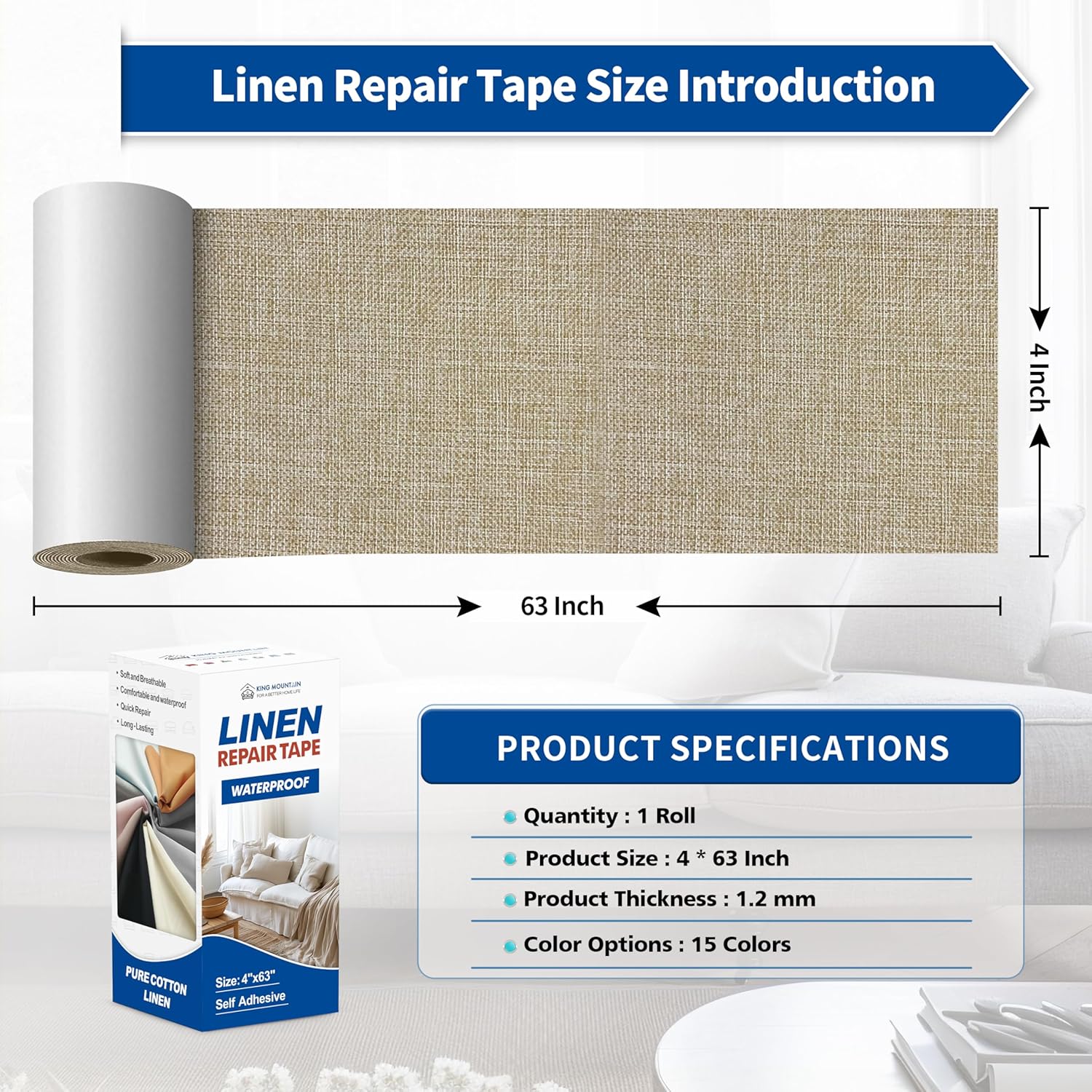 - Soft Fabric Repair Tape: Classic size 4" x 63", economical and practical, made of pure cotton linen repair tape, with a smooth and soft surface, comfortable and breathable, scratch-resistant and durable, it does not fade after long-term use, providing the comfort you desire while completing the repair.