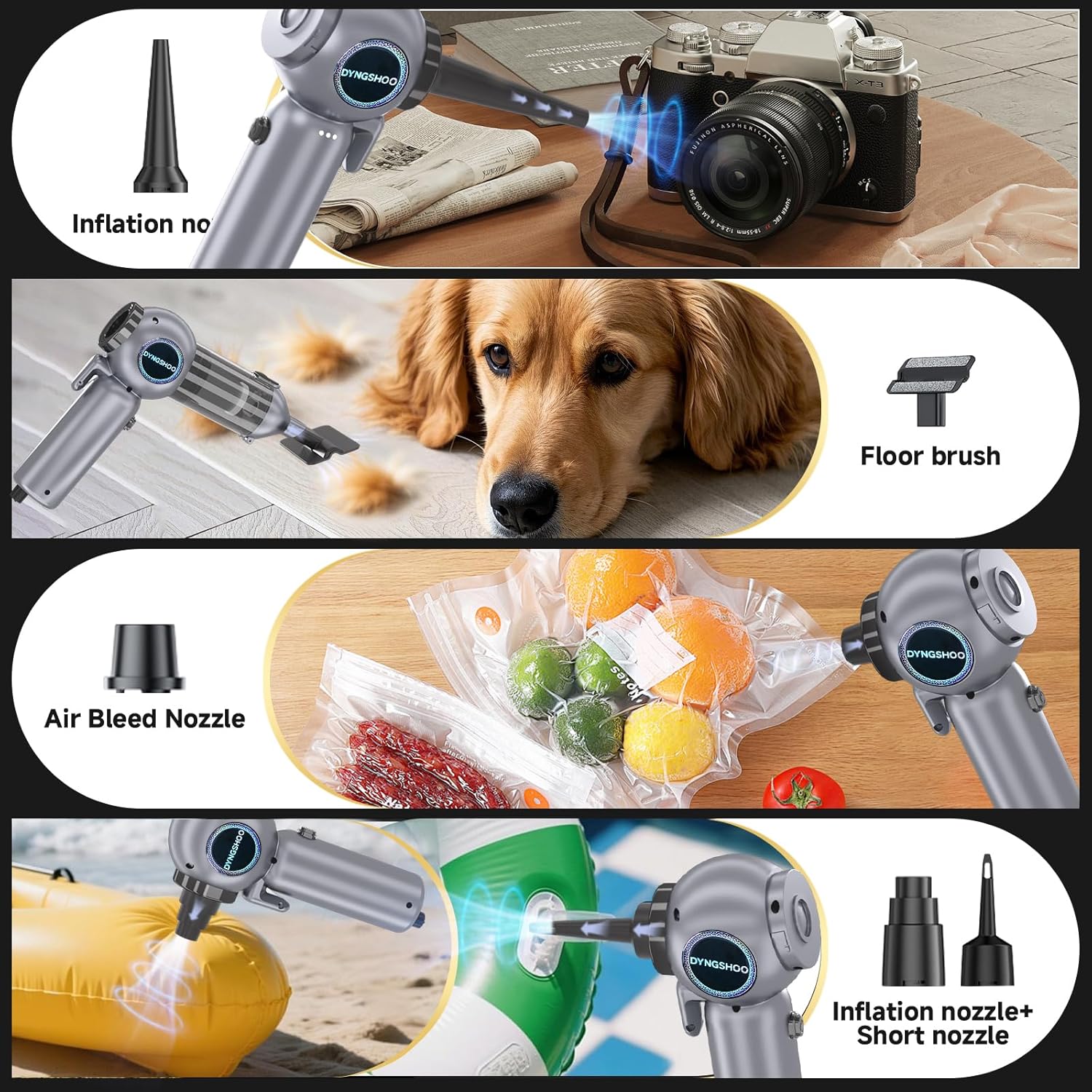 - 4-In-1 Multifunctional Mini Vacuum Cleaner】 The Automotive Car vacuum cleaner is designed to meet a variety of cleaning needs, including blowing, vacuuming, and pumping. It is not only suitable for cleaning hard-to-reach crevices such as computer keyboards and mainframes, but also effective in removing large stains from sofas, seats, and other areas. With its various attachments, this multifunctional car accessory ensures that every inch of your car seats – even those covered in dirt, leaves, and sand after every ride – can be meticulously cleaned up in a matter of seconds.