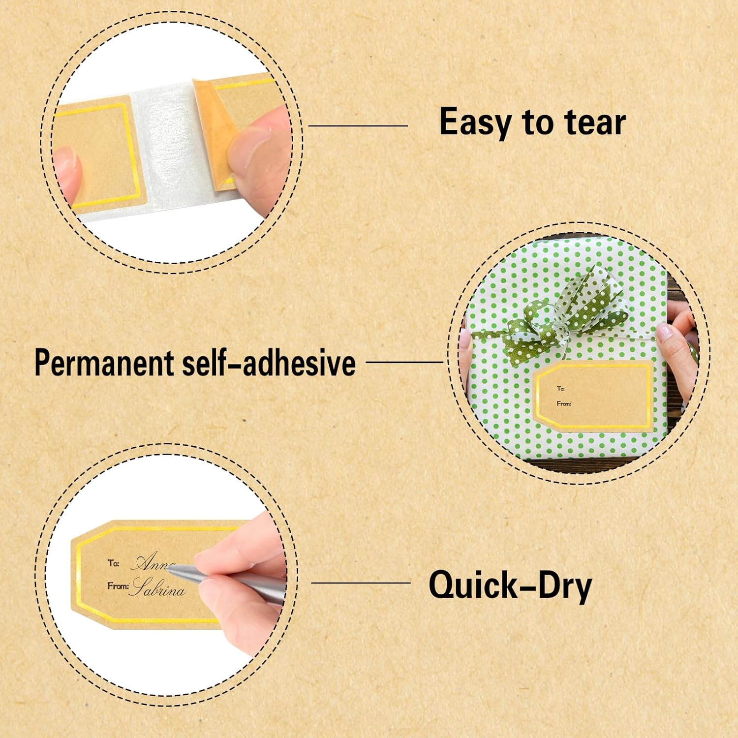 - Good Adhesion- These natural kraft label stickers have good adhesion, can be easily attached to most surfaces, and is not easy to fall off